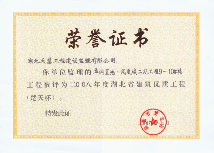 華潤置地鳳凰城二期工程9-10#樓 2008年湖北省建筑優(yōu)質(zhì)工程(楚天杯)
